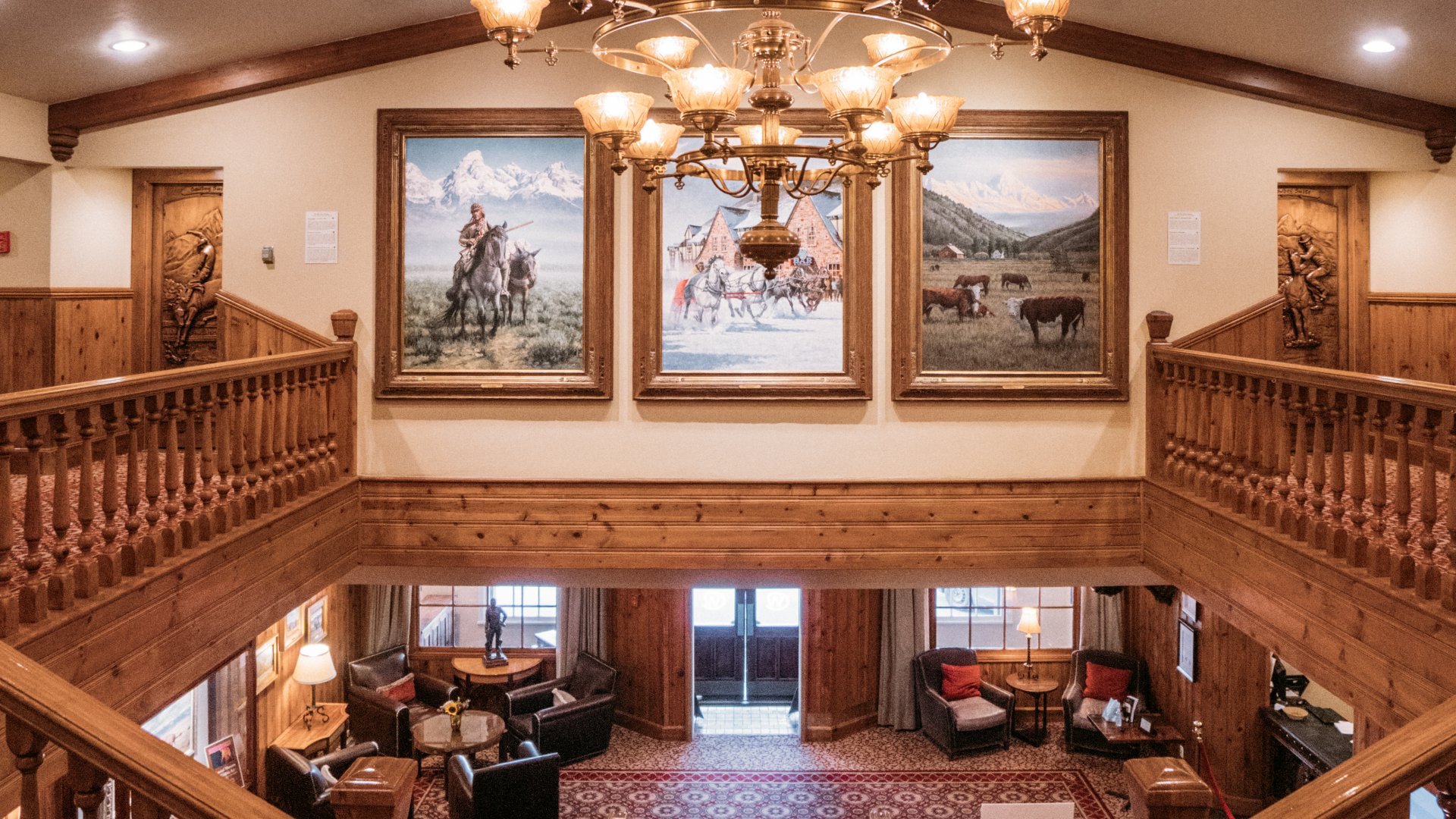 The Wort Hotel is a must stop for the Western Fine Art Enthusiast. The Hotel contains over 175 pieces of original contemporary and traditional Western Art, valued at over $1.2 million. Each piece of art was carefully chosen by Wort owner Bill Baxter and represents his passion and style for art. It features sculptured bronze work, acrylics, and oils. Something more unique in the art world is the Hand Carved Wood Western Themed Doors. Each door represents a theme for the Suite décor inside; Cowboy, Cowgirl, Shoshone, Teton or Silver Dollar. Look inside these rooms and you will find additional original artworks from that region or time period. The majority of the artwork is on display publicly throughout the hotel, approximately 100 pieces. The Silver Dollar Bar is known for its Saloon pieces by recently deceased artist Ray McCarty. The Wort Hotel and Silver Dollar Inc. have the largest collection of McCarty pieces at 50; Steven Wynn of Las Vegas has 42 making his the 2nd largest collection. The Shoshone Suite as well as some of the public spaces of the hotel feature Native American pieces conveying historical depictions of the Western Frontier and Native American Tribes. Key pieces by Gerry Metz, John Clymer and Joe Velazquez are included. Velazquez pursued his creative passion in fine art portraying with historical accuracy the people and routes of the fur trade era.